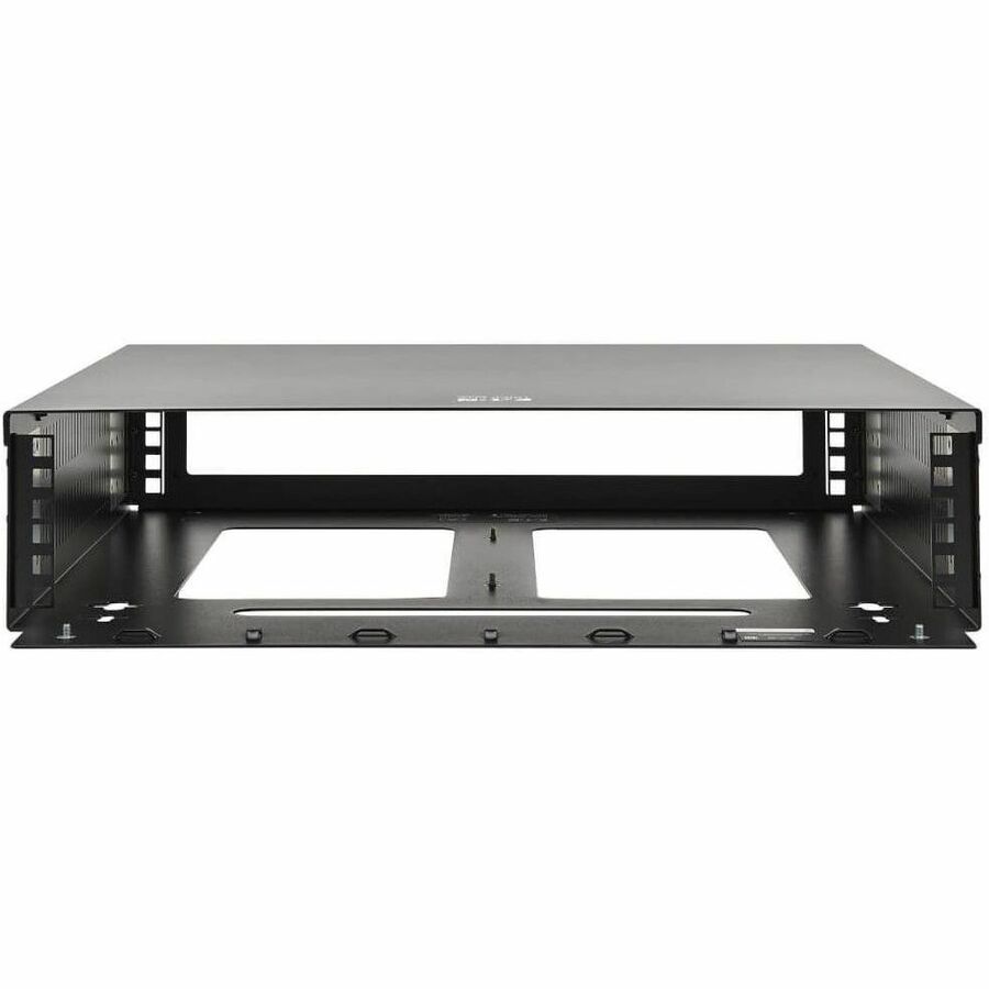 The SRWO2UBRKT comes assembled (except for the front panel) and ready to mount to a wall or beneath a desk. Rear keyhole mounting slots are spaced 16 inches (40.6 centimeters) apart to match standard wall studs. Hardware is included for equipment installation.