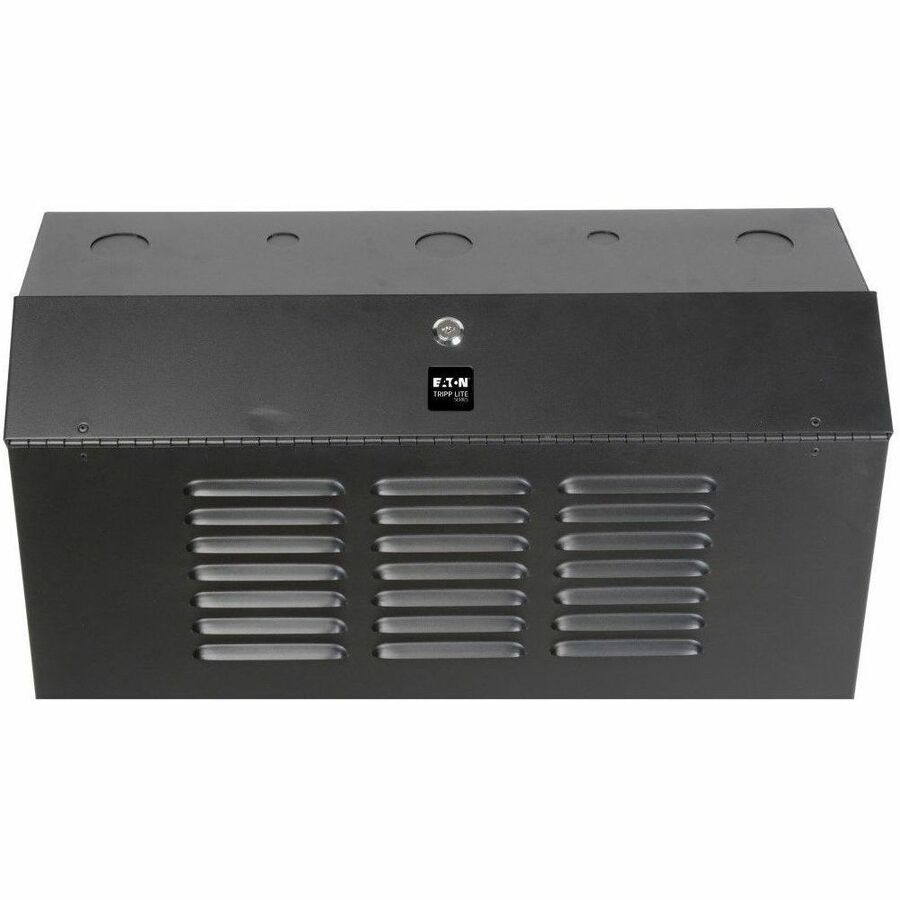 The SRWF5U SmartRack 5U Low-Profile Vertical-Mount Switch-Depth Wall-Mount Rack Enclosure Cabinet is designed to house EIA-standard 19-inch rack equipment in network wiring closets, retail locations, classrooms, back offices and other areas with limited floor space where you need equipment to be secure, organized and out of the way. Constructed from heavy-duty steel with a durable black powder-coated finish, the cabinet has a maximum load capacity of 150 pounds.Because the low-profile cabinet mounts vertically, it extends less than 10 inches from the wall while housing equipment up to 20 inches deep, including network switches and patch panels. In addition to 5U of rack space in the primary mounting area, it also includes a slide-out 2U mounting bracket at the top of the enclosure for patch panels up to 2.5 inches deep. The top panel and front door lock securely to help prevent damage, tampering or theft. The cabinet is vented, which allows air to flow freely and keep equipment cool. The reversible front door can open left or right. Convenient top and bottom ports allow easy cable routing. The SRWF5U comes fully assembled and ready to mount to the wall. Equipment installation is easy with threaded mounting holes and hardware that support M6 or 12-24 mounting.