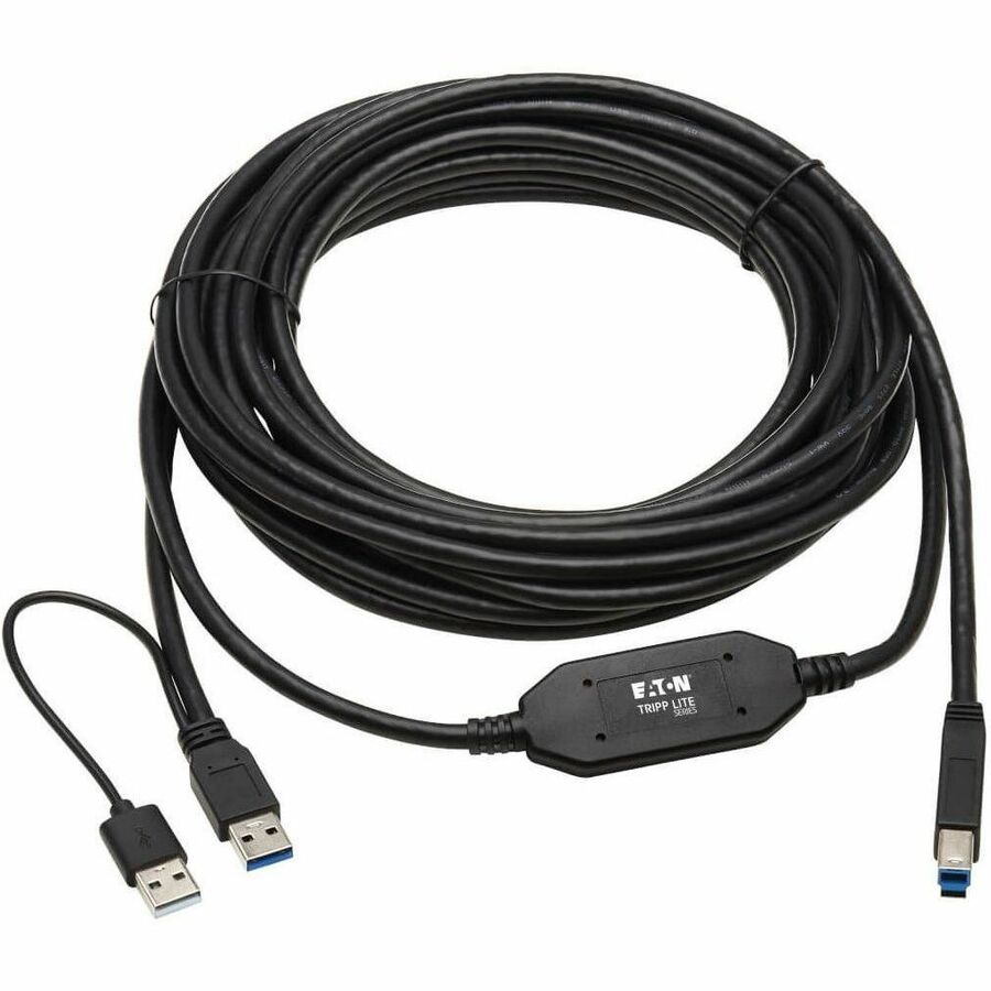 The bus-powered signal booster supports USB 3.2 Gen 1 data transfer rates up to 5 Gbps with no latency or signal loss. The booster is constructed in the middle to allow the cable to be easily pulled through raceway. The cable is backward compatible with previous USB generations, so you can use it with legacy equipment.