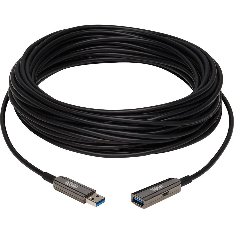 This USB 3.2 Gen 1 extension/repeater cable (M/F) attaches to your current USB cable to extend your USB connection by 10 meters (33 feet). The U330F-10M-G1 connects computers, servers, external hard drives, surveillance cameras and other devices with a USB-A port. Note: You must first connect the USB-A male connector, then the USB-A female connector.