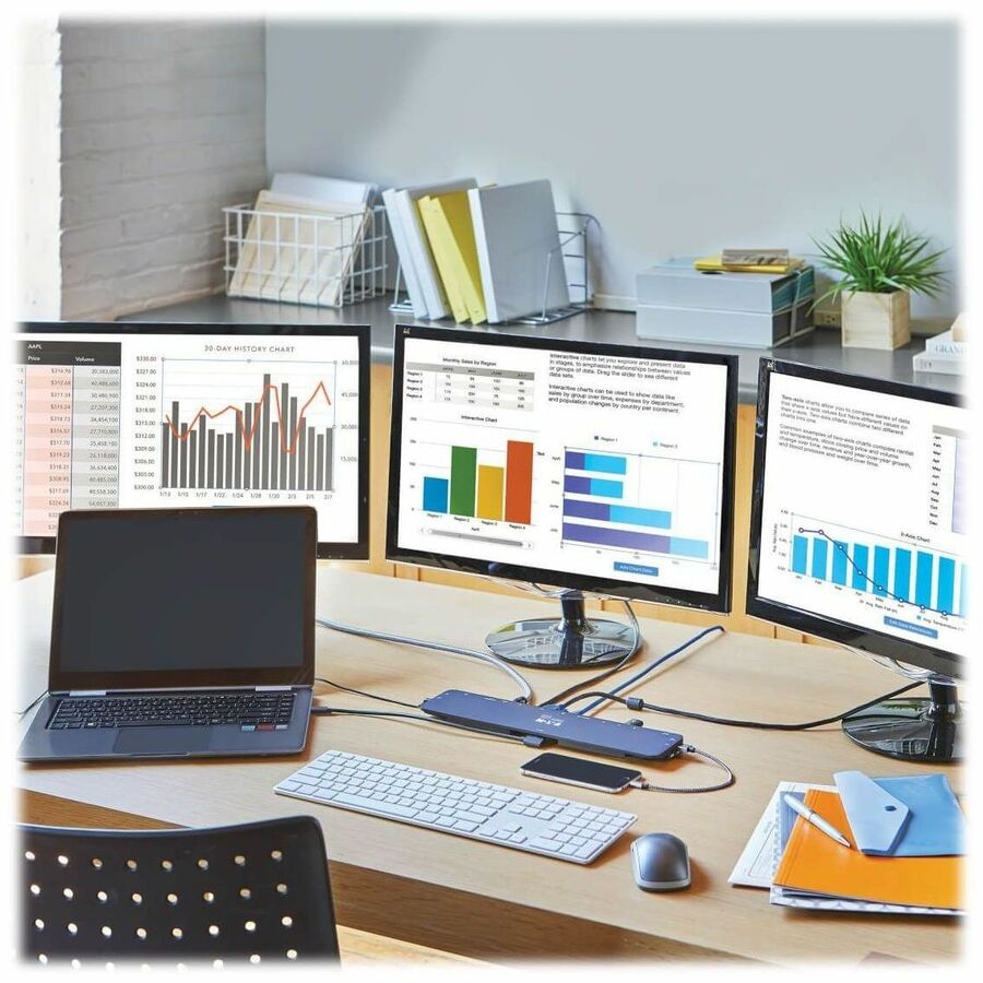 - USB-C docking station with 14 ports lets you mirror or extend video from your laptop or PC across as many as 3 different displays