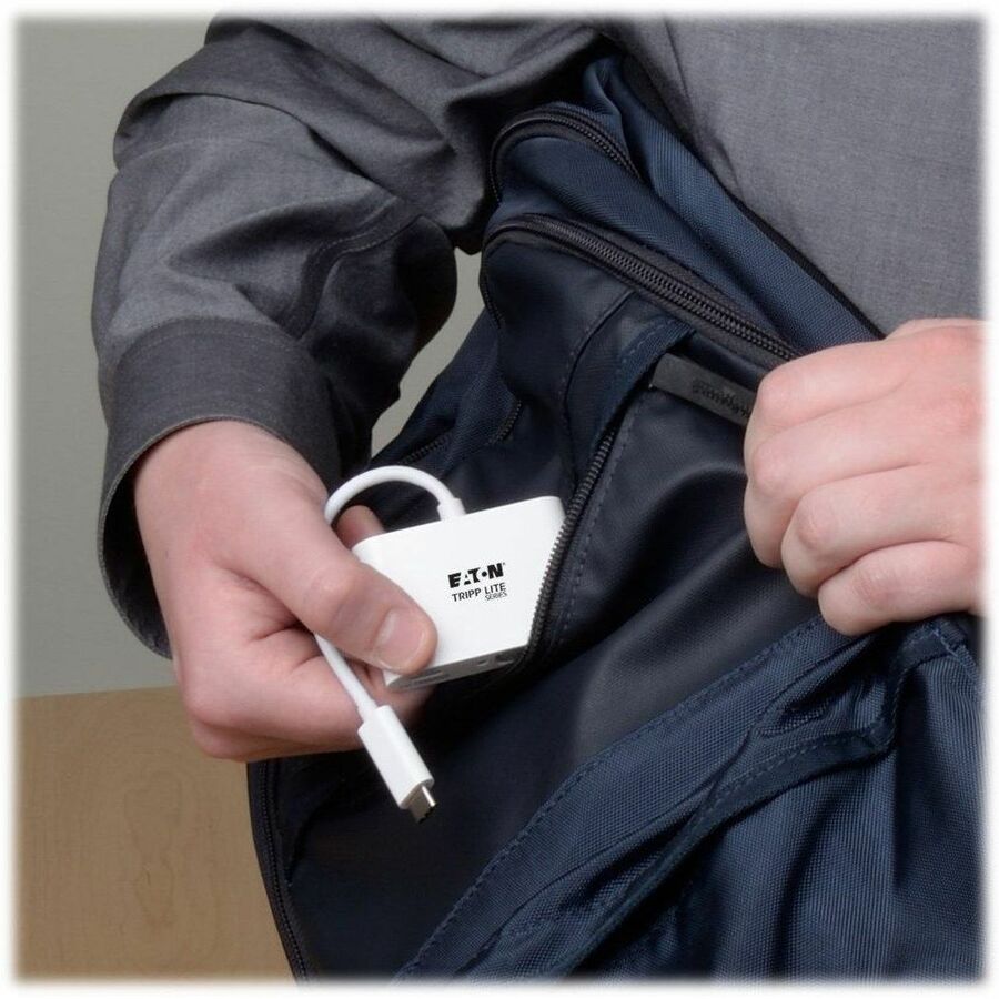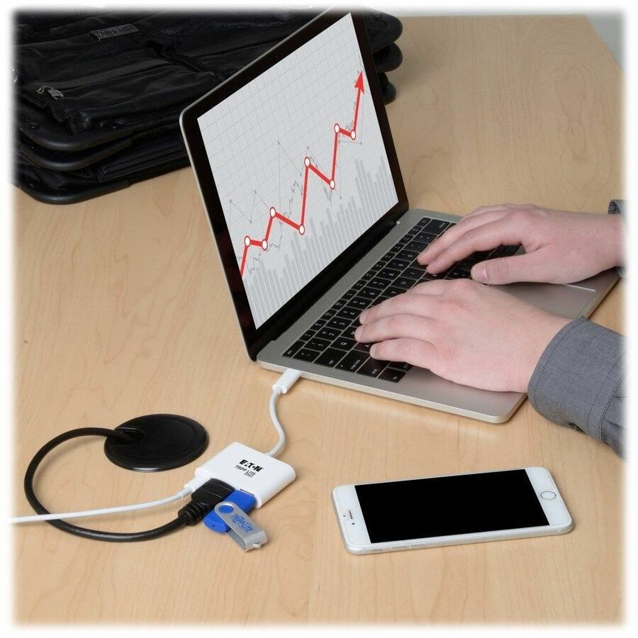 The U444-06N-HU-C USB 3.1 Gen 1 USB-C to HDMI Adapter expands the potential of your tablet, laptop, Chromebook, MacBook, smartphone or PC’s USB-C or Thunderbolt 3 port. It’s ideal for transmitting digital audio and 1080p video to a large display, adding a thumb drive or other USB peripheral, and powering and charging a PD Charging-compliant mobile device-all at the same time.