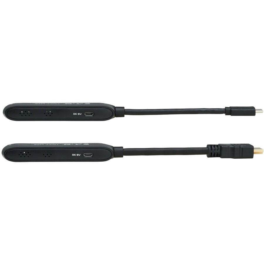 The wireless transmitter and receiver set works right out of the box with no software required. Connect the receiver to the display’s HDMI port and the transmitter to the source’s USB-C port. Included USB cables connect the two units to a 5V 1A AC wall charger (not included) if extra power is required.