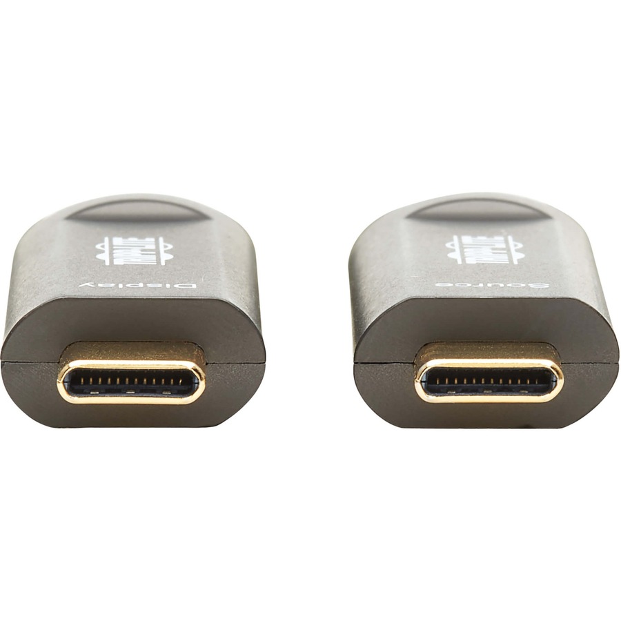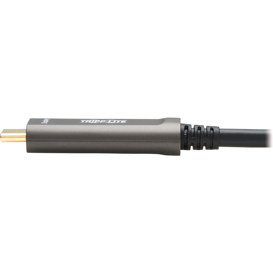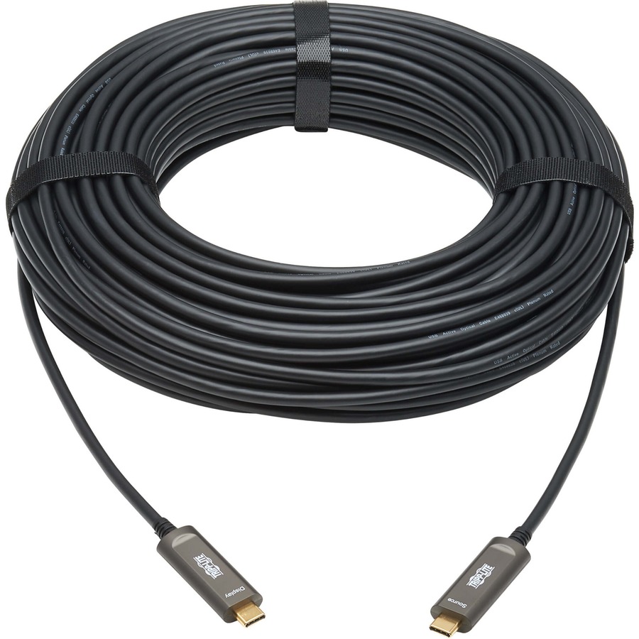 This USB Type-C to USB Type-C fiber optic cable (M/M) securely connects the USB-C or Thunderbolt 3 port on your MacBook, Windows laptop or other compatible device to an HDTV, monitor or projector with a USB-C input. Because the cable uses optical fiber, it can transmit audio/video signals longer distances with no latency or loss.