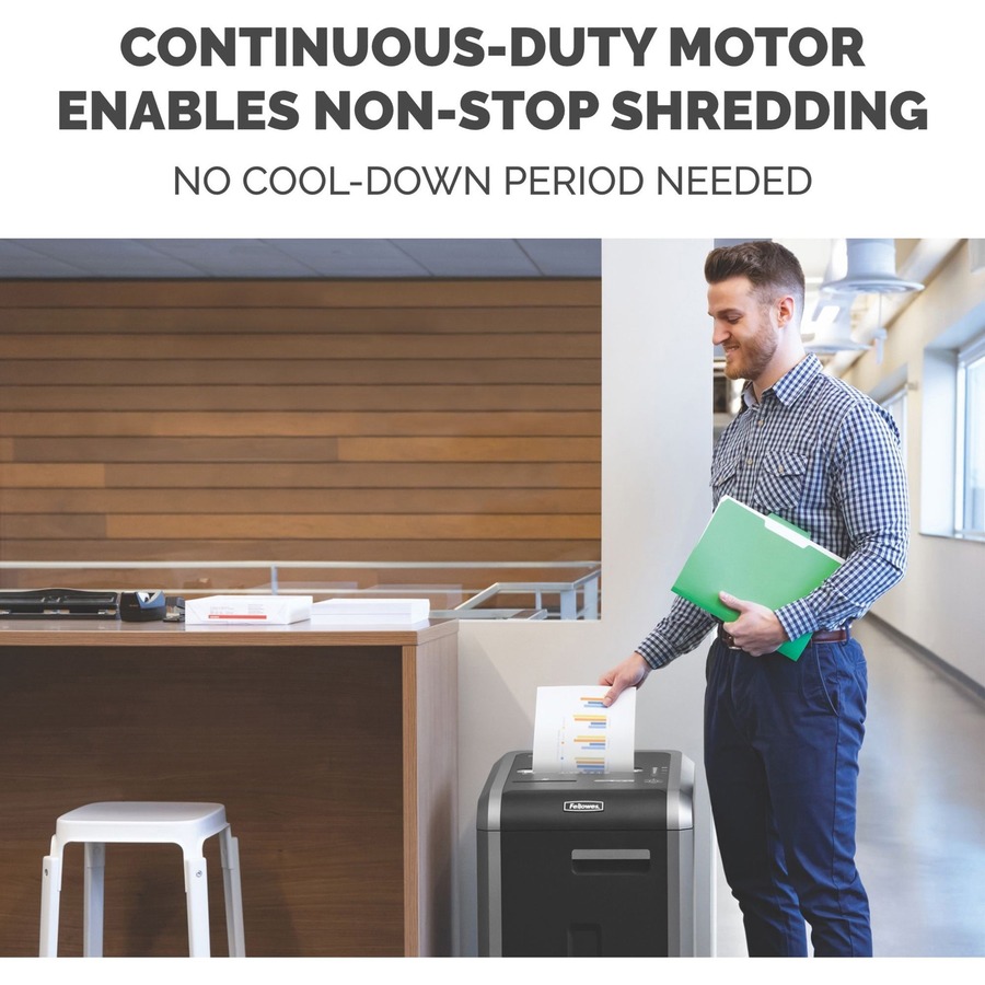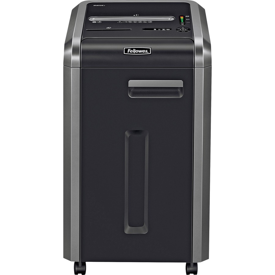 Designed to support your workflow while complementing your workplace, the Fellowes® 225Ci Cross-Cut Commercial Shredder ensures an efficient, safe, and productive shredding experience. Ideal for use in large offices, the 225Ci can shred as many as 22 sheets per pass, with a continuous-duty motor enabling non-stop shredding – no recovery time needed. Paper jams can jeopardize security and disrupt your workflow, which is why the 225Ci includes a 100% Jam Proof System, featuring three levels of jam-preventive technology for frustration-free operation. Providing versatility and enhanced security for sensitive information, the 225Ci shreds each sheet into 397 5/32″ x 1-1/2″ cross-cut particles (security level P-4) and also powerfully shreds through plastic credit cards, staples, paper clips, CDs/DVDs, and junk mail. To keep you and your coworkers safe, the 225Ci includes patented SafeSense™ Technology, which stops shredding when hands touch the paper opening. While other shredders can cause distractions in shared environments, the 225Ci’s SilentShred™ technology ensures ultra-quiet operation. The innovative Energy Savings System even optimizes energy usage at all times, whether in or out of use. And to prevent the need for frequent emptying, the 225Ci features a spacious 16-gallon removable bin.