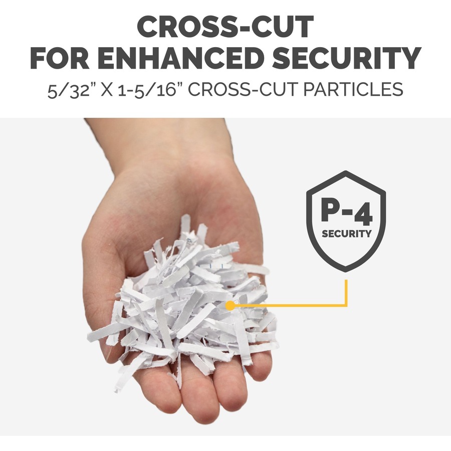 Enhanced Security to Keep Information Safe: Shreds 6 sheets of paper per pass into 5/32″ x 1-5/16″ cross-cut particles (Security Level P-4), providing greater security for confidential documents