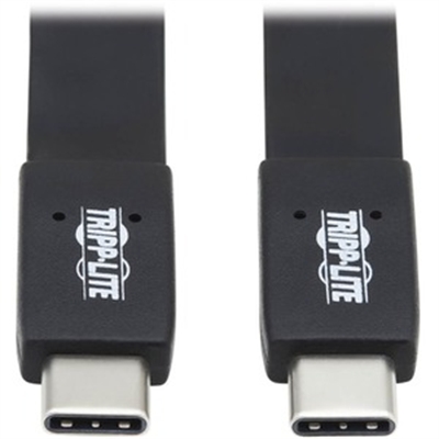Tripp Lite USB-C Flat Cable (M/M) – USB 3.1 Gen 2 (10 Gbps), 5A Rating, Thunderbolt 3 Compatible, Black, 16 in.