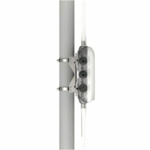 This enterprise class 802.11ax ruggedized indoor/outdoor AP provides three radios for tri-band access on radio capable of four spatial streams. As a Wi-Fi 6E access point it provides 6GHz band operation, OFDMA, a 10 Gigabit Ethernet port, plus an additional 1 Gbps Ethernet port with PoE out. The integrated BLE radio can be used for beacons and locationing applications.
