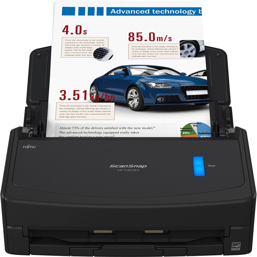 The beautifully simple iX1400 will digitize, process, and organize all your documents from one easy device. You don’t need to know IT. You just need to press the blue button. With no complex settings to configure, the iX1400 is up and running from the box in record time. Its one-touch scanning turns time-consuming chores into simple tasks at the push of a button. Just scan, save, and share.