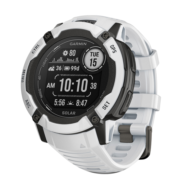 Garmin 010-02805-14 Instinct 2X Solar GPS Smartwatch with 50-mm Case, Bluetooth, Health/Fitness, LED Flashlight, Sports Apps, 10 ATM Water Rated (Whitestone)