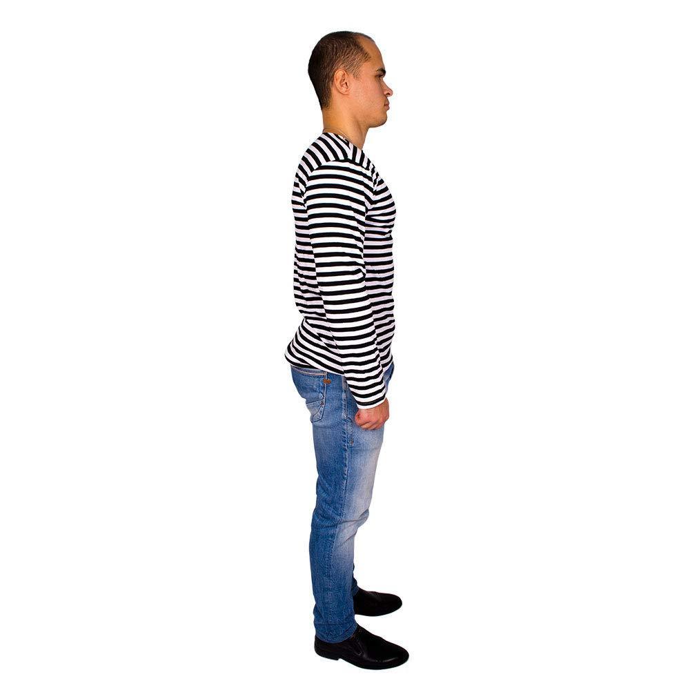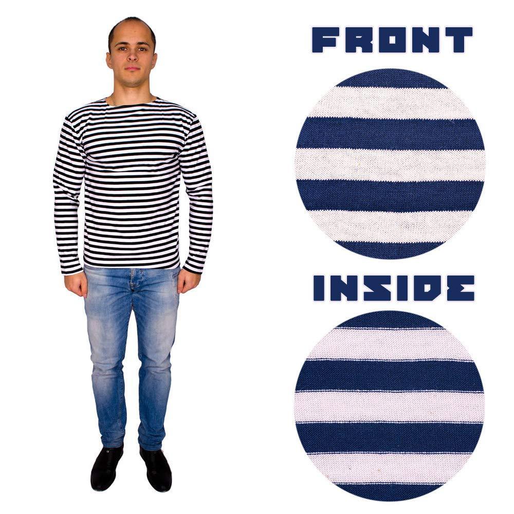 Strips are white and navy blue and they are weaved, not painted as sometimes Chinese guys made falsified t-shirts