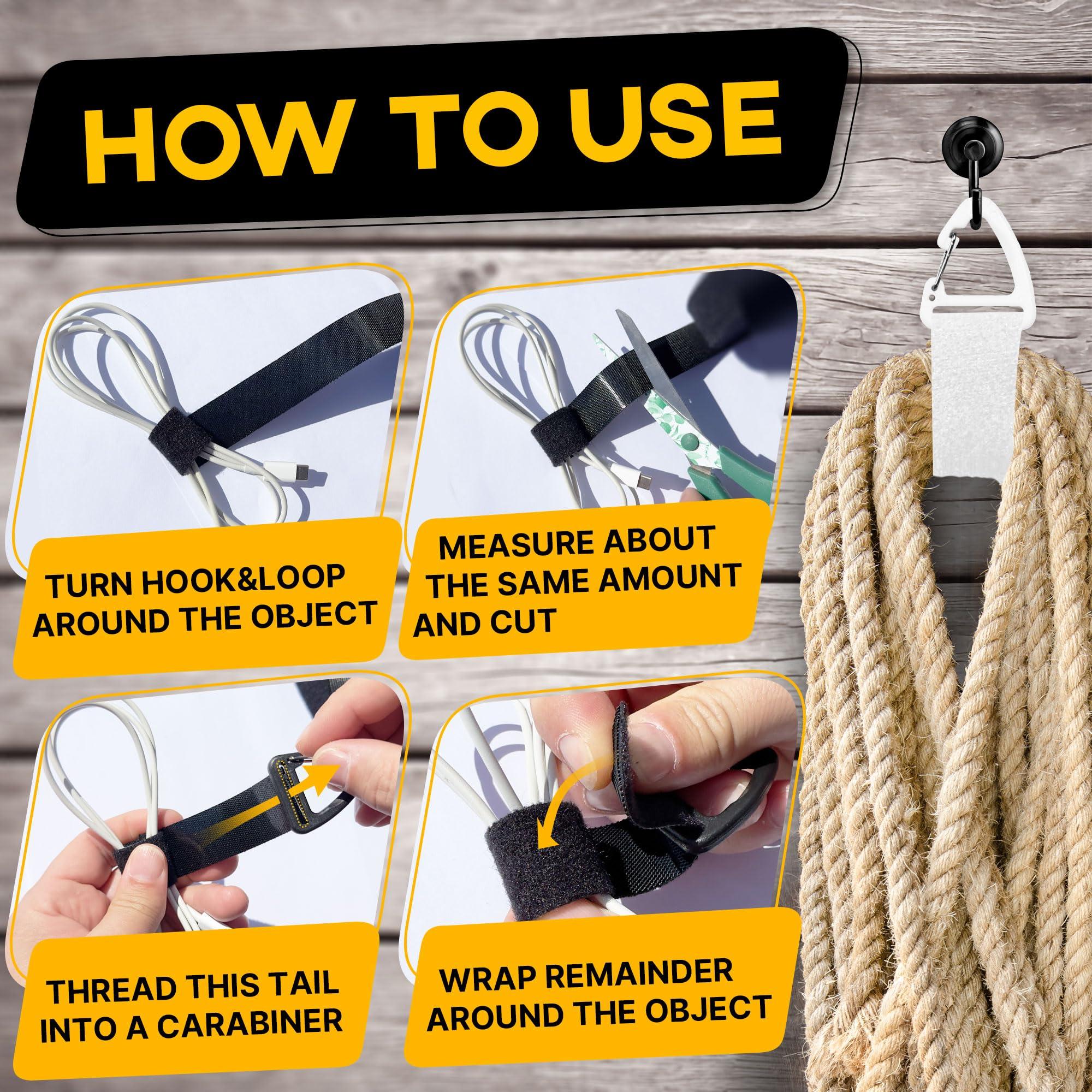 Cord holders, cable tidies in fact, these hook and loop straps with carabiners have so many uses they are ideal for anyone who likes to keep things neat and orderly. Whether you’re using them as an extension cord strap or for other storage needs, their adjustable and reusable nature ensures they can handle any task you throw at them