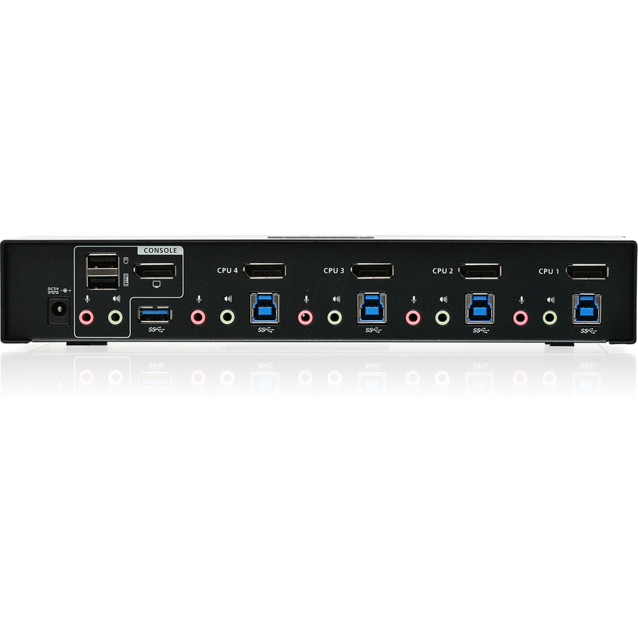 Featuring a revolutionary combination of 4K DCI resolution, the next generation USB3.1 hub, and enhanced user-friendly operation, IOGEAR’s 4-Port DisplayPort1.2 KVMP Switch provides the latest innovations in DisplayPort KVM technology. Connect your powerhouse computers and experience True 4K resolution while switching between the four computers and sharing two USB peripherals with the push of a button. The 4-Port DisplayPort 1.2 KVMP Switch combines the functionality of a KVM switch with a DisplayPort 1.2 digital interface, built-in USB 3.1 Gen 1 hub, and audio. Control four DisplayPort computers with ease using a single keyboard, mouse, and DisplayPort monitor. Expand your USB 3.0 peripherals connectivity with faster data transfer rate and eliminate redundant hardware.