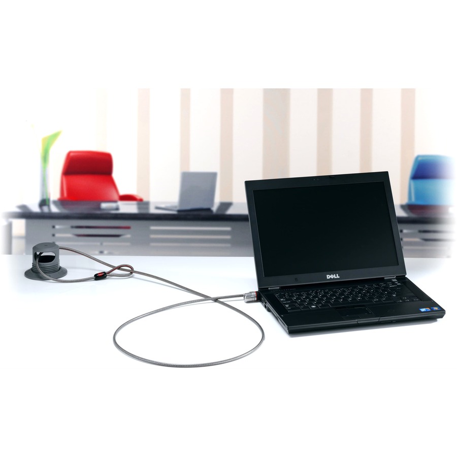 - Provides a secure anchor point through the grommet hole found in most work spaces and desks