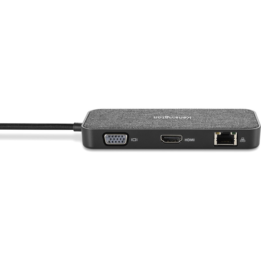 The perfect compact mobile dock, the SD1650P USB-C Single 4K Portable Docking Station with 100W Power Pass-Through – Win/Mac/Chrome/iOS/Android delivers 100W of pass-through power, single 4K (HDMI @ 30Hz) or 1080p (VGA Full HD @ 60Hz) video; and six ports for productivity on the go, including 5Gbps speeds via two USB-A 3.2 Gen1 ports, and a USB-C 3.2 Gen1 port; and a 1Gbps Ethernet port. Supports USB-C iPads and Samsung DeX, for a computer-like experience from Samsung Galaxy, Note, and Tab devices. Includes cable storage clips for the included 11-inch (27.9cm) cable, and a three-year warranty for the peace of mind knowing you’re covered by Kensington.