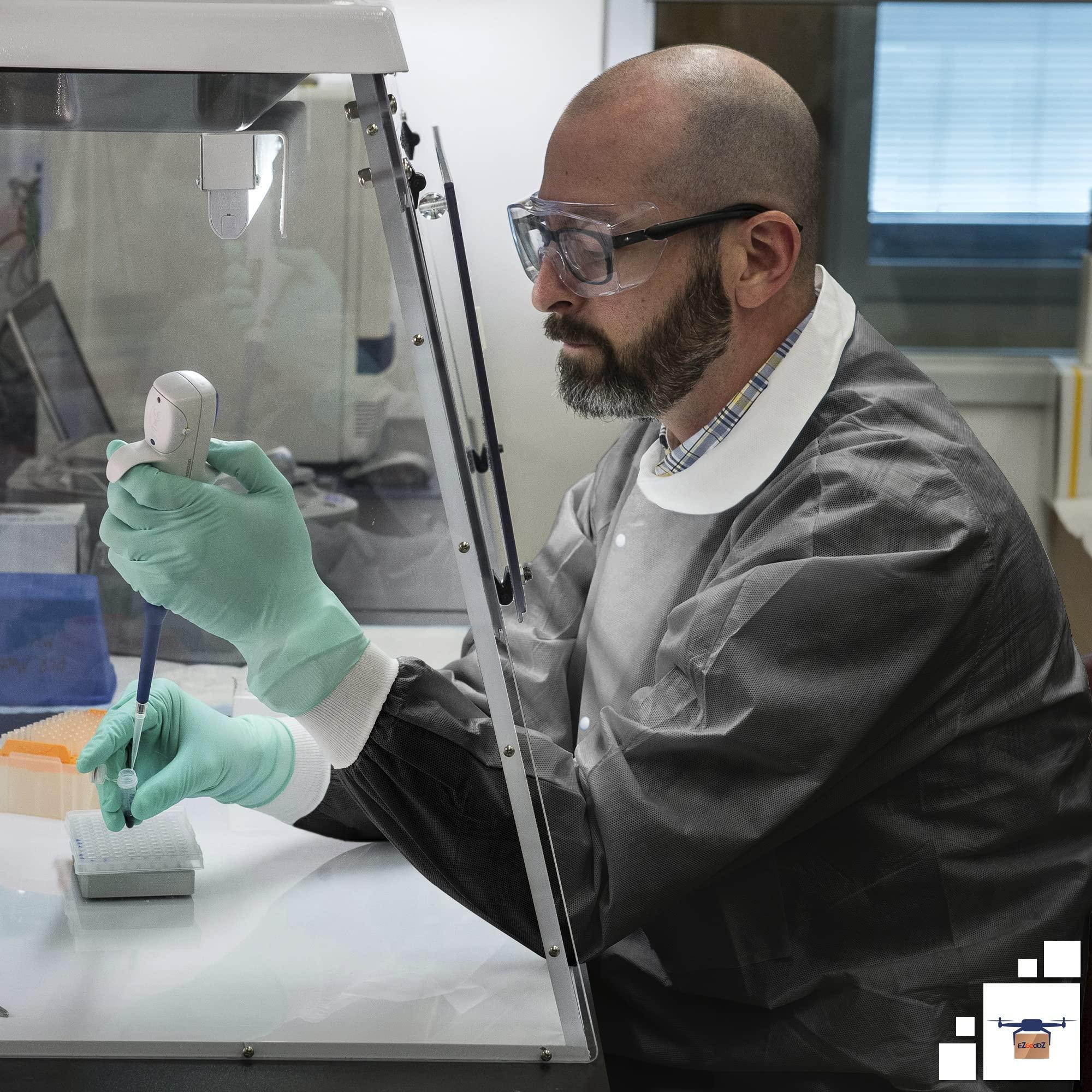 SAFETY JACKET DESIGN: Medical jacket disposable with long sleeves features smart and simple design. Our PPE jacket includes comfortable front snaps, knitted cuffs and collar. Disposable shirts have 3 large pockets for easy storage.