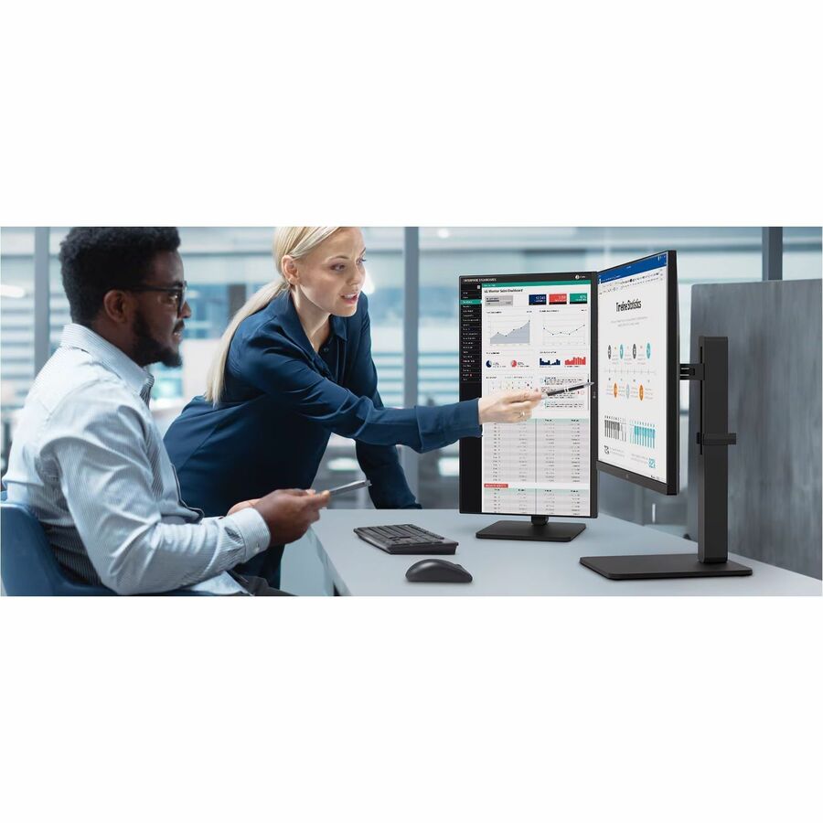 LG monitor with IPS technology delivers a clear and consistent true color. It provides visual comfort for viewing charts and reports with others, presenting clear images from virtually any angle.
