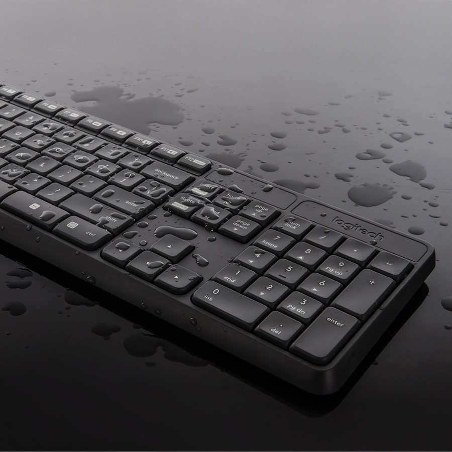 - Durability: The keyboard of the Logitech MK235 wireless keyboard and mouse combo features a spill-proof design (2), anti-fading treatment, and sturdy tilt legs.