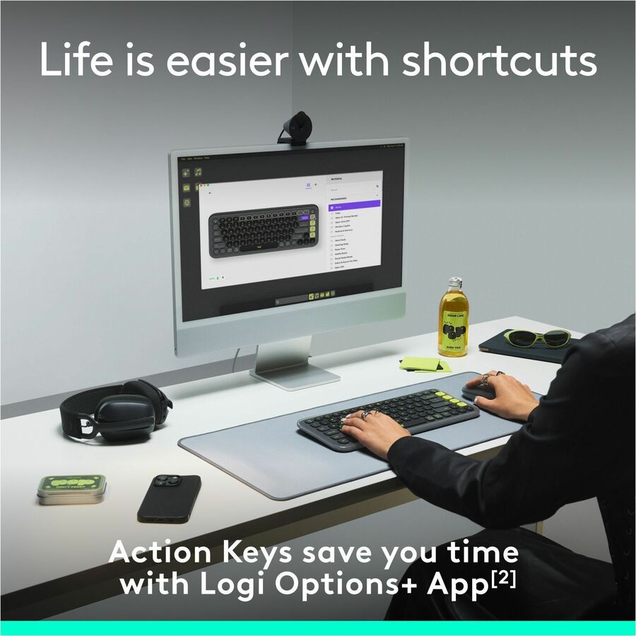- Life Is Easier With Shortcuts: Quickly switch between work, social, and break (Netflix, Spotify) modes, or access your AI tools in less than 1 second with the Action Keys and Logi Options+ App