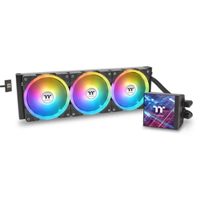 A perfect addition to your new show piece PC, the Thermaltake MAGFloe 420 Ultra CPU Cooler is packed with features to stand out. Equipped with a 3.95 square LCD display to show pictures and videos as well as system information to stay up to date on how things are performing. Providing cooling for the 420mm radiator is a trio of SWAFAN EX, with a set of swappable blades to change airflow direction so your LEDs are always in view. To make connections easier we have included our MAGForce 2.0.
