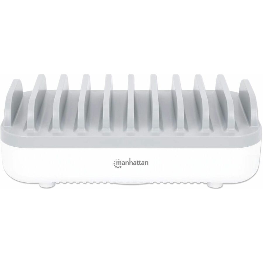 The Manhattan 10-Port USB Charging Station keeps USB-powered devices – tablets, phones, cameras, Bluetooth headphones and portable game consoles – charged and ready to go. It plugs into any standard wall outlet and offers rapid charging, so it’s perfect for home, school and office use. To help with organization, ten wide bays fit most devices in their cases, keeping the countertop clean and clutter-free. That means everything can charge in one place, without having lots of chargers plugged into a power strip or devices spread all over your desk. It also means you’ll have some freed-up USB chargers to stow in a laptop bag, purse, luggage bag or briefcase for when you need to charge devices away from home or the office.