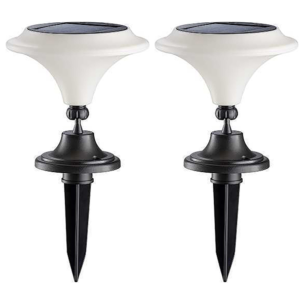 • Set of two 25-lumen warm-white solar lights provides accent lighting for paths or walls;• Ideal for outdoor spaces to enhance visibility and safety at night; helps reduce falls and tripping by lighting up dark areas;• Stylish and functional design for any outdoor setting;• Solar-powered with a rechargeable battery charged daily by the sun; energy-efficient and environmentally friendly with no electricity needed;• Up to 8 hours of battery life per light, with solar-powered auto charge during the day and auto-on at dusk;• Weather-resistant design for durability in various outdoor conditions;• Includes batteries, ground mounting hardware, and wall mounting hardware;