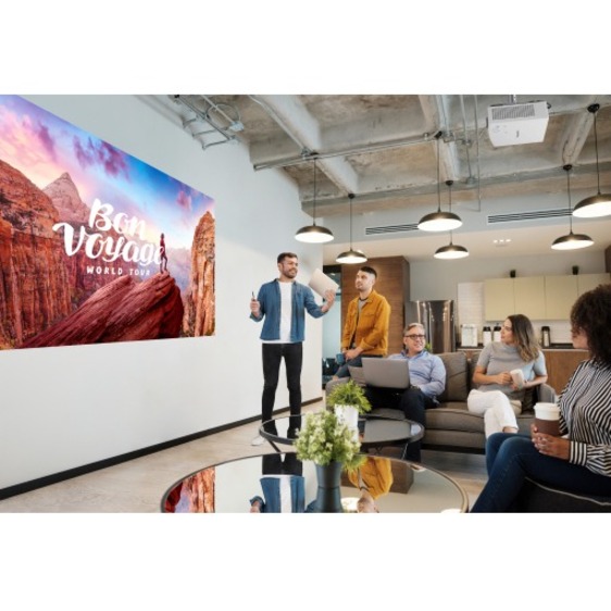 Deliver clear, striking images in well-lit open meeting spaces and classrooms from the smallest and lightest LCD laser projector in its class. High 7,000 lm brightness, 3,000,000:1 contrast, and vivid color creates an engaging presentation experience.