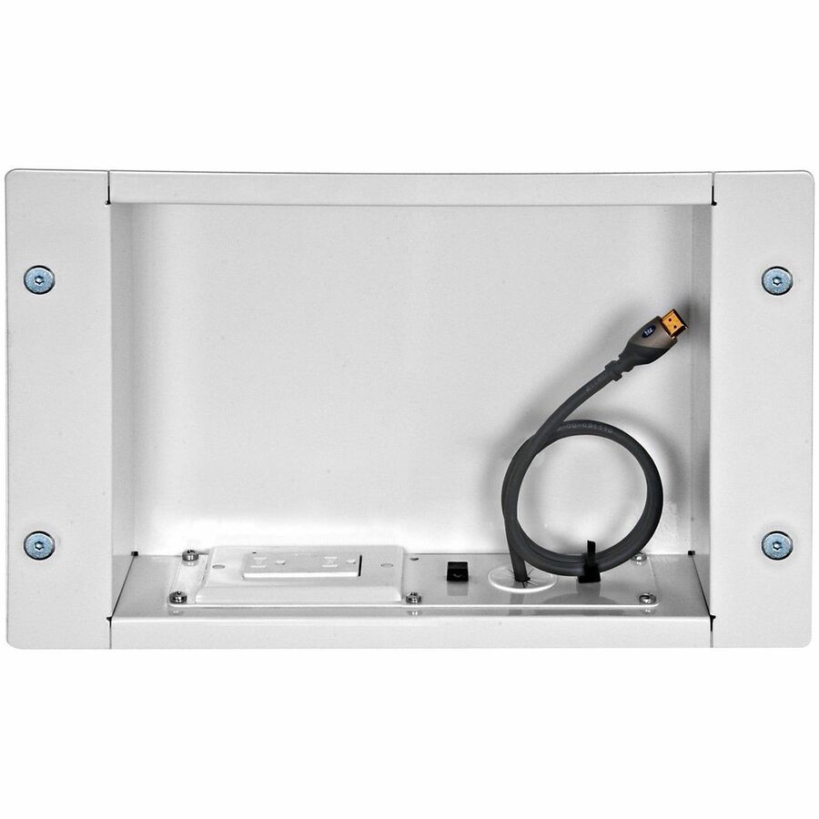 Peerless-AV’s In-Wall Accessory Box with 125V Duplex Power Receptacle allows cables and cords to become virtually invisible. When combined with a Peerless-AV® wall mount, the In Wall Accessory Box provides the perfect behind-the-screen solution to conceal unsightly power and low voltage cables, like HDMI or RCA, behind flat panel displays, audio components or other devices. Complete with a receptacle knock-out for adding included duplex power module, the IBA2AC creates a professional look in any setting.