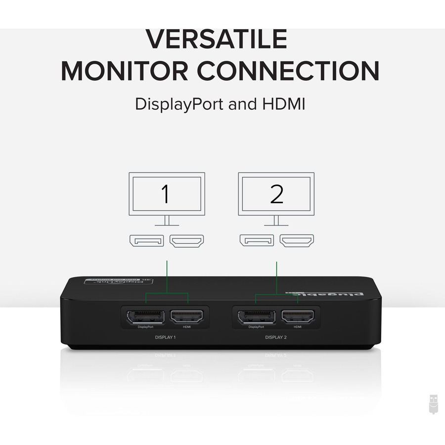 Equipped with the state of the art DisplayLink DL-6950 chipset, our adapter can support two external HDMI 2.0 or DP 1.2 displays up to 4K resolutions per display from the HDMI 2.0 or DP 1.2 outputs.