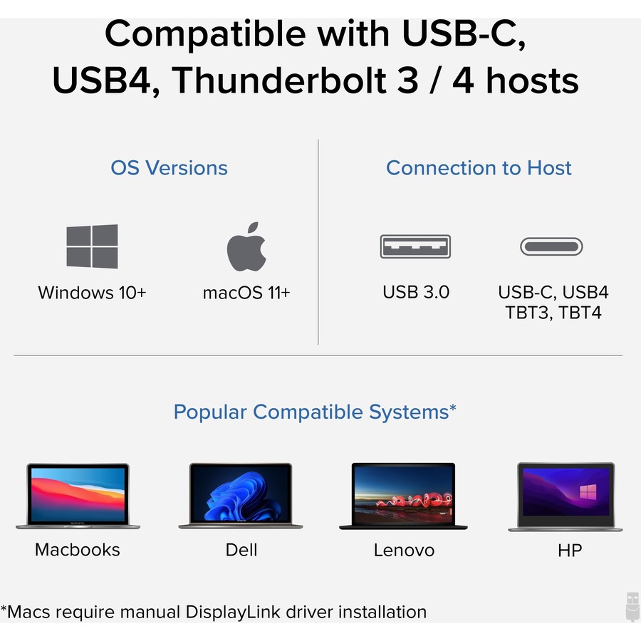 - Compatibility-For Windows 10+, macOS 11+ computers w/USB-C, Thunderbolt 3 / 4, USB4. Ideal for web and productivity apps like Google Docs, Office. Not for gaming, graphics-intensive or design work. No support of HDCP-protected content like Netflix