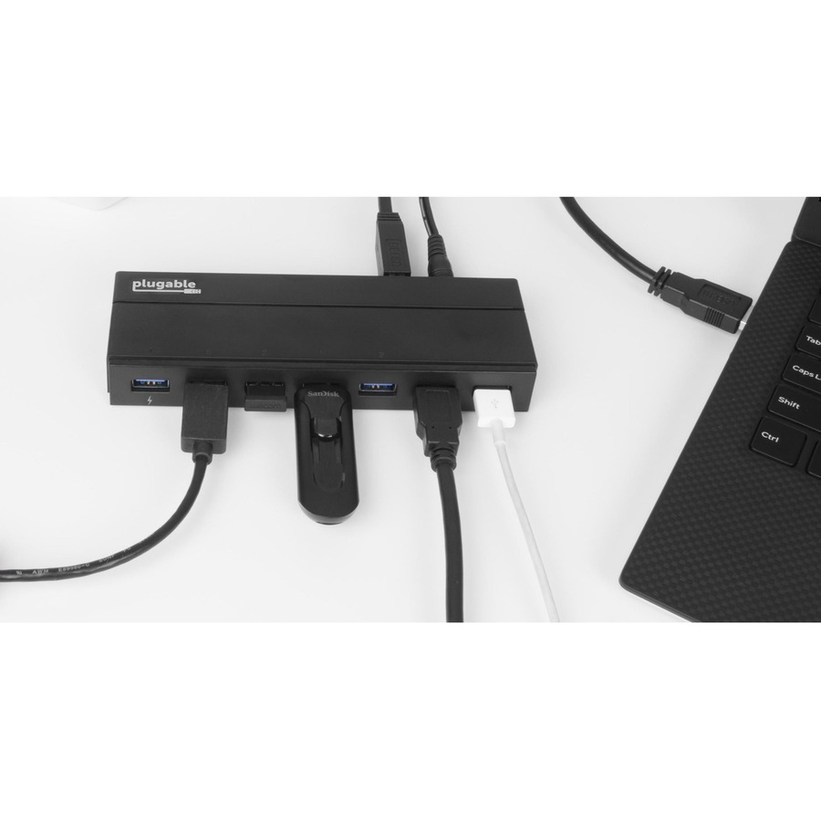 Connect up to seven USB 3.0, 2.0, or 1.1 devices to a single port on any computer. Fully plug and play, devices can be hot-swapped, supports USB over-current protection. Professional matte black with per-port blue LEDs.