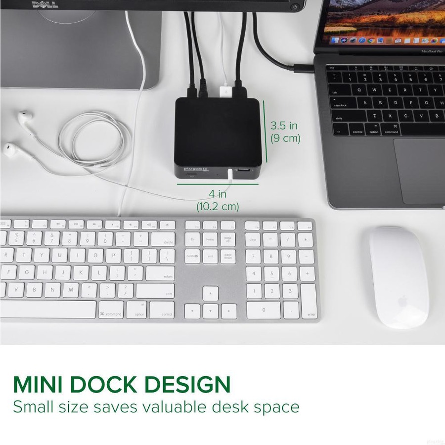 The Plugable UD-CAM USB-C Mini Docking Station provides an additional HDMI display output (via Alternate Mode, converted internally to HDMI for maximum compatibility), up to 85 Watts of Power Delivery (PD) to charge your host computer via USB-C (host computer must support PD over USB-C), gigabit Ethernet, audio, and expanded USB device connectivity. All through a single USB-C cable.
