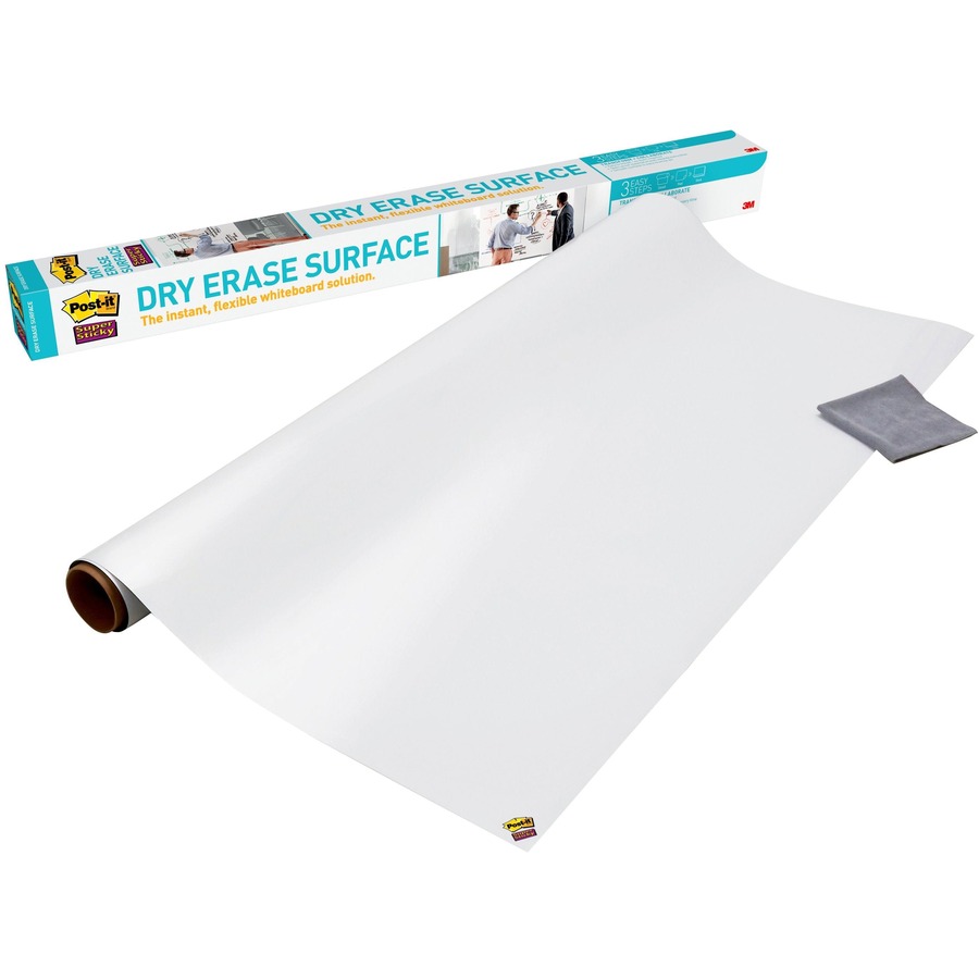 Post-it Dry Erase Surface transforms walls and other surfaces into a whiteboard. The stain-free surface allows your team to be creative and share ideas, again and again, without ghosting. Post-it Dry Erase Surface is easy to install and requires no tools. Simply unroll, peel and stick. Transform walls, replace a blackboard or stained whiteboard into a fresh dry-erase surface. Use with Post-it Super Sticky Notes to organize ideas. Whenever you want to brainstorm, present or track projects, Post-it Brand is ready to help you succeed.
