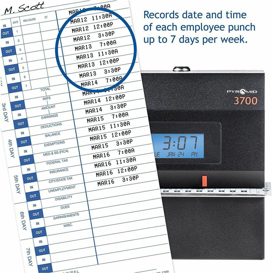 - For use with Pyramid time clock models 3500, 3600SS, and 3700