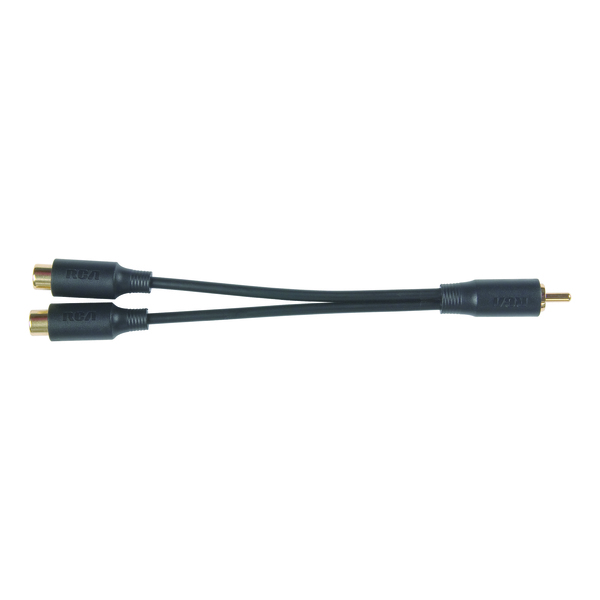 • Converts a single RCA-type female jack to 2 RCA-type female jacks;• Cable has a single male RCA-type plug to 2 female RCA-type jacks;• Corrosion-resistant connectors;• 3 in. L;