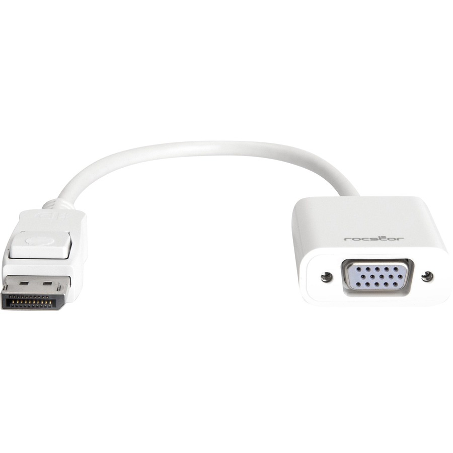 The Rocstor DisplayPort to VGA adapter lets you to take video content from your laptop or desktop and display it on any monitor, projector or HDTV featuring a VGA input. This premium adapter supports a maximum video resolution of 1920 x 1200 and ensures a quality viewing experience. The adapter can be used to enjoy movies on a home projector, mirror your desktop for an expanded workstation or show presentations at school or work. The adapter is compliant with DisplayPort specification version 1.1a, ensuring true DisplayPort quality when video content is adapted and viewed. DisplayPort 1.1a specifications allow there to be a longer reach between source and display without reducing picture quality. Purchase with confidence and rely on the protection of a 2 Year Limited Hardware Warranty from Rocstor for your Rocstor DisplayPort to VGA adapter.