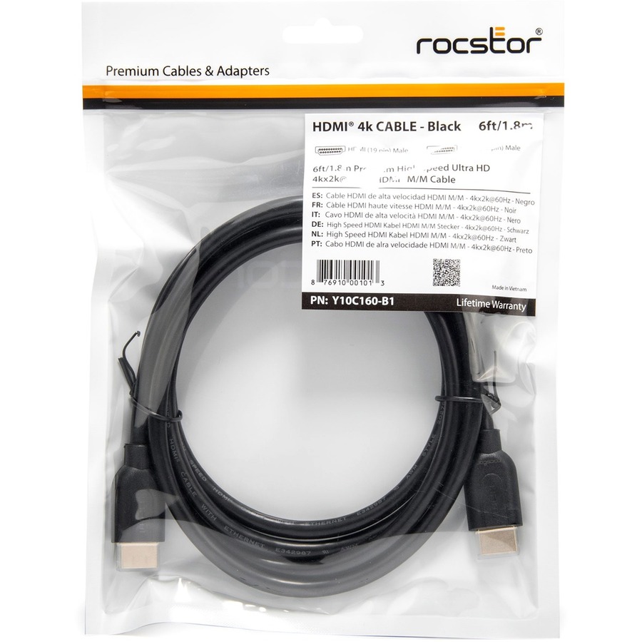 Rocstor’s Premium 6 ft (2m) High Speed HDMI® 2.0 Cable is designed to deliver the maximum high definition experience to your HDTV supporting 4Kx2K @ 60Hz with resolutions of up to 3840×2160 at bandwidths of up to 18Gbps. Designed with the highest Gold plated connector quality, this HDMI 2.0 cable is designed to connect cable boxes, satellite receivers, Blu-ray players, streaming devices, computers, projectors, and game consoles to your flat panel TV. Rocstor HDMI® 2.0 cable has the latest HDMI resolutions standards and it is designed to support today’s advanced electronics utilizing High Speed (category 2) HDMI with Ethernet. It supports up to 18.2 Gbps bandwidth. You will experience a crisp and clear picture with no lag time on any of our digital video equipment. Experience full 4K 2060p resolution. Backwards compatible with all previous versions, it supports today’s 3D capable devices for a true movie theater experience. High-Definition Multimedia Interface (HDMI®) enables the delivery of both high-definition video and multichannel, digital audio quality through just one cable. Rocstor’s HDMI® 2.0 Audio Video Cables deliver the richest possible HD video and digital audio experience to your home theater. Use your Rocstor premium cable Worry free which is backed by Lifetime Limited Warranty.