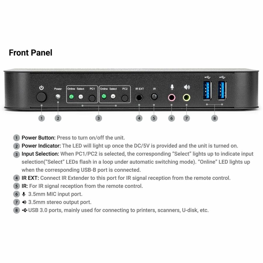 - Supports a display(Either DP or HDMI) and a set of Keyboard and Mouse to control two PCs with DP ports