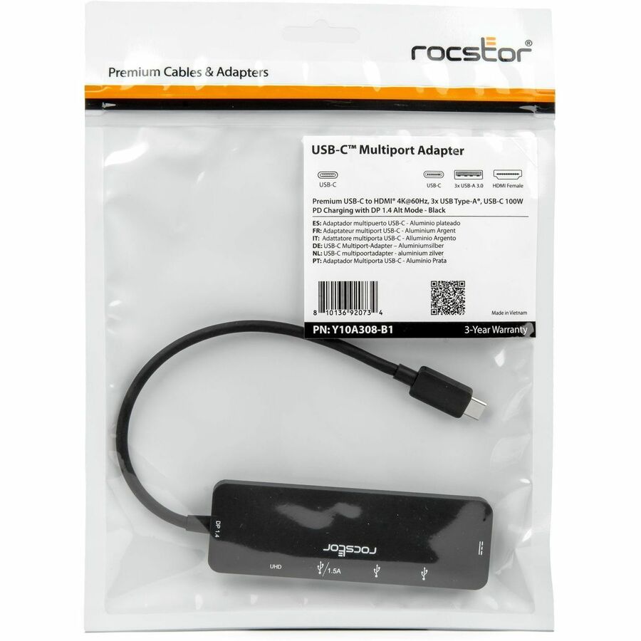 Compatible with all DP Alt mode supported Type-C hosts, the Rocstor 3-in-1 Adapter ensures seamless integration and enhanced functionality. It supports HDR, HDCP 2.2 & HDCP 1.4, and multiple color depth outputs, providing an exceptional visual experience. The USB-A port allows for high-speed data transfer and downstream charging up to 7.5W, while the Type-C port offers both power delivery and data transfer capabilities. Designed for robust performance and versatility, the Rocstor USB Type-C 3-in-1 4K Multiport Adapter is an essential accessory for maximizing your device’s connectivity and productivity. Backed by Rocstor 2-year limited warranty and lifetime free technical support.