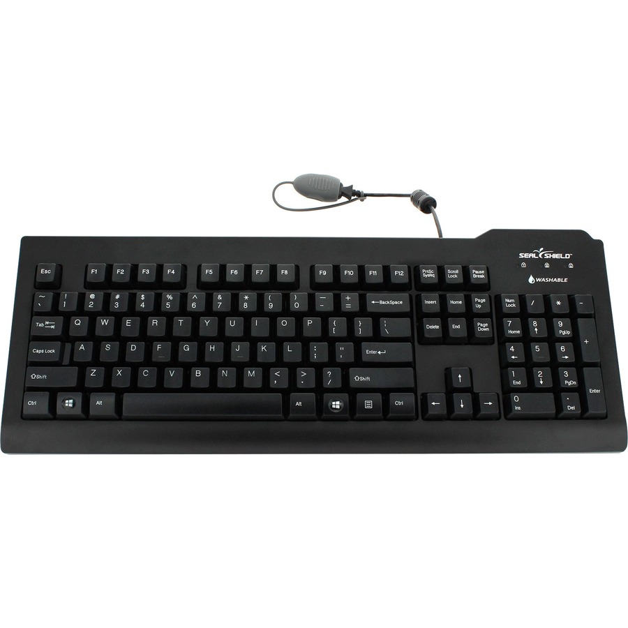 The Seal Shield keyboard is the original, medical grade, dishwasher safe keyboard used by hospitals worldwide. The Seal Shield keyboard starts with our patent pending electronic waterproofing technology. Electronic components are sealed in a watertight housing safely tucked into this award-winning keyboard solution. Enjoy True Type typing comfort from the full-travel IBM-style keys which are laser etched to prevent fading from frequent washings or even cleaning with mild abrasives. The Seal Shield keyboard features a 24K Gold-plated USB connector that will not rust or corrode from water exposure. Our exclusive Seal Cap (Patent Pending) prevent water intrustion through the cable connector when the keyboard is being washed.
