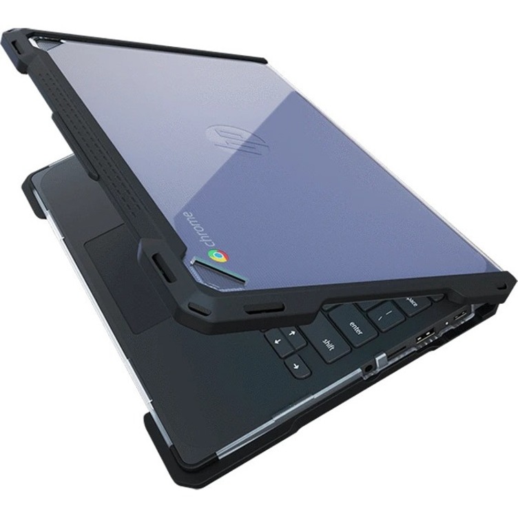 Designed for the Classroom. The UZBL Rugged Hard Shell Case for HP Chromebook 11 G8 / G9 EE offers maximum drop protection by utilizing reinforced TPU edges that absorb drops and falls and a clear polycarbonate snap-on shell design to protect from scratches that also allows for convenient asset or barcode scanning.