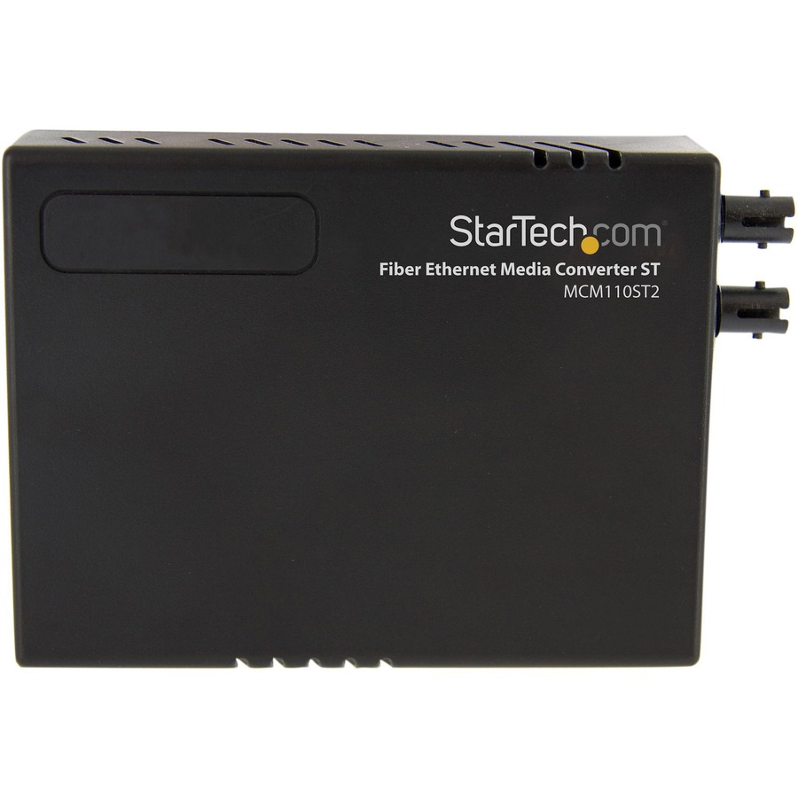The MCM110ST2 10/100 Multi Mode ST Fiber Ethernet Media Converter (2 km) creates a cost-effective Ethernet to fiber link, transparently converting to/from 10Base-T or 100Base-Tx Ethernet signals and 100Base-Fx optical signals to extend an Ethernet network connection over a multimode fiber backbone.