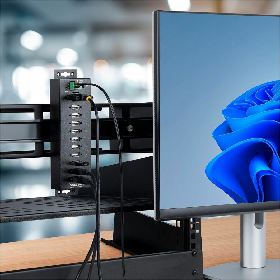 • FLEXIBLE MOUNTING: Multi-port USB Hub features built-in mounting brackets for wall/desk installations; Included DIN rail mounting kit; All the USB ports on the Hub feature screw-lock connectors for preventing accidental disconnection