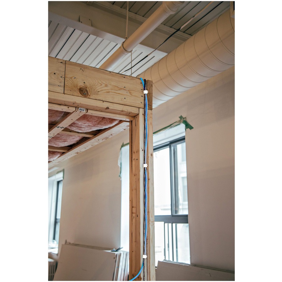 These single nail cable clips secure cables to the wall to route and organize them. 100 White cable clips are included, ensuring you’ll have plenty on hand.
