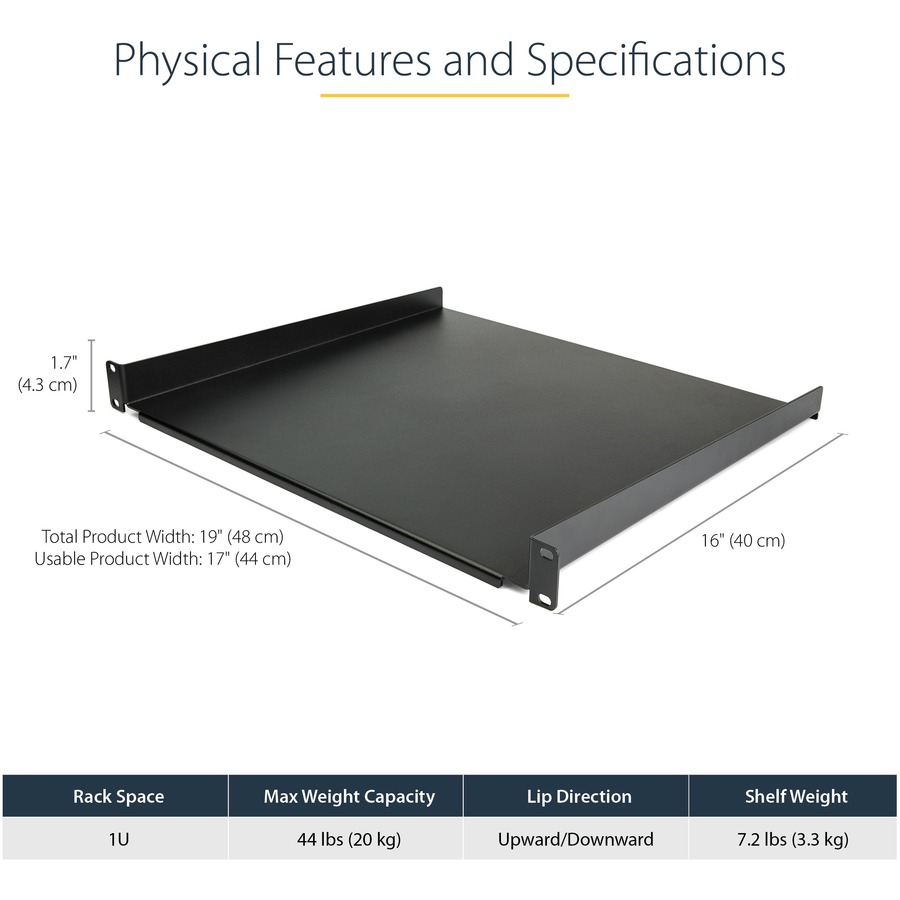- INDUSTRY-LEADING SUPPORT: Backed for life by StarTech.com and free lifetime technical support on this TAA compliant 1U solid server rack shelf/tray, and has been the choice of IT professionals and businesses for over 30 years