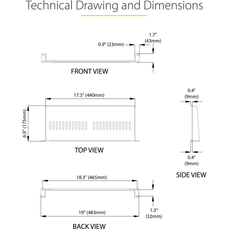 This 1U rack shelf lets you add 7in. (17.5 cm) of flat storage space to any EIA-310 compliantserver rack or cabinet. The shelf is vented to improve air flow and help lower temperatures in your rack.