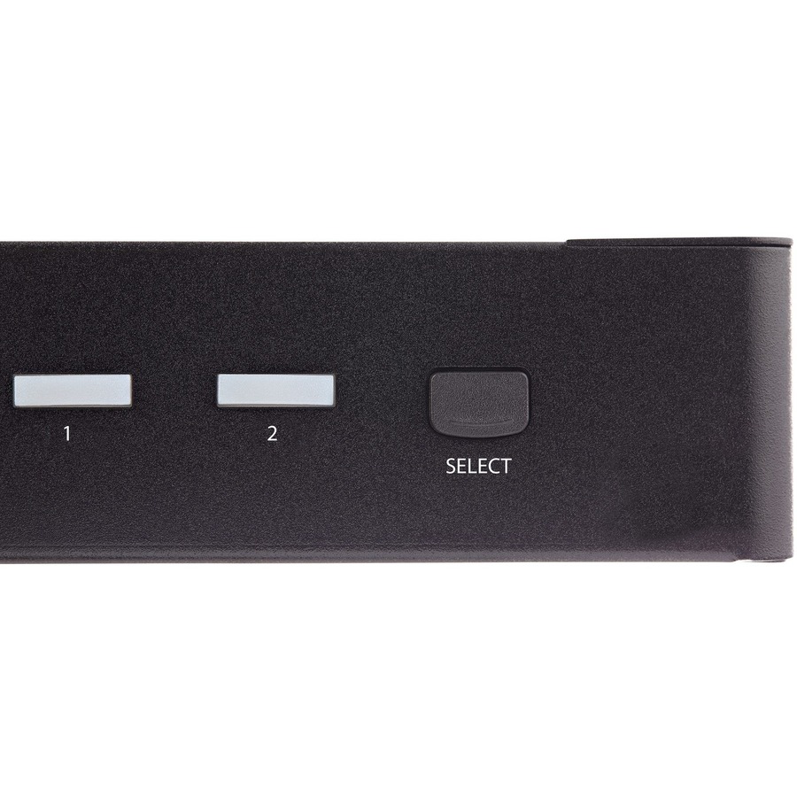 This 2-port KVM switch combines 4K (60Hz) digital display capabilities with control of two connected computers.