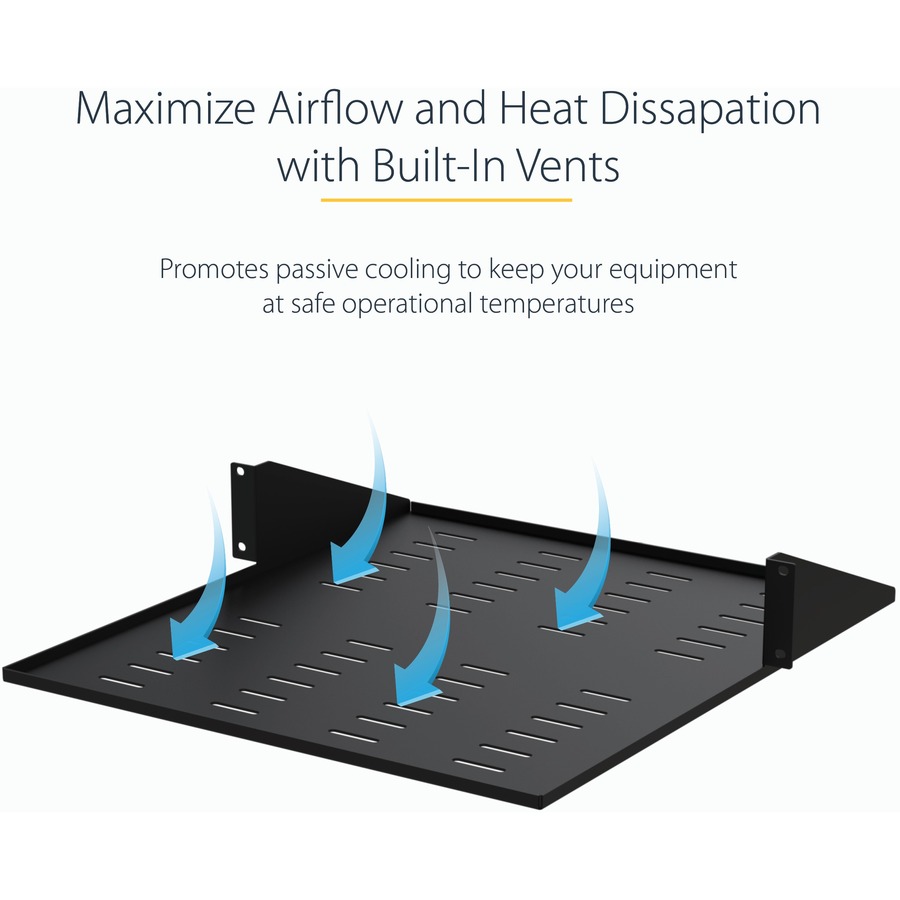 Our 2u rack shelf is EIA 310 compliant meaning it can fit most standard 19″ 2 post racks. The included mounting brackets can be adjusted to accommodate different post depths, making this center mount rack shelf a universal solution for 2 post rack storage, while the vented design helps to improve airflow in the rack.