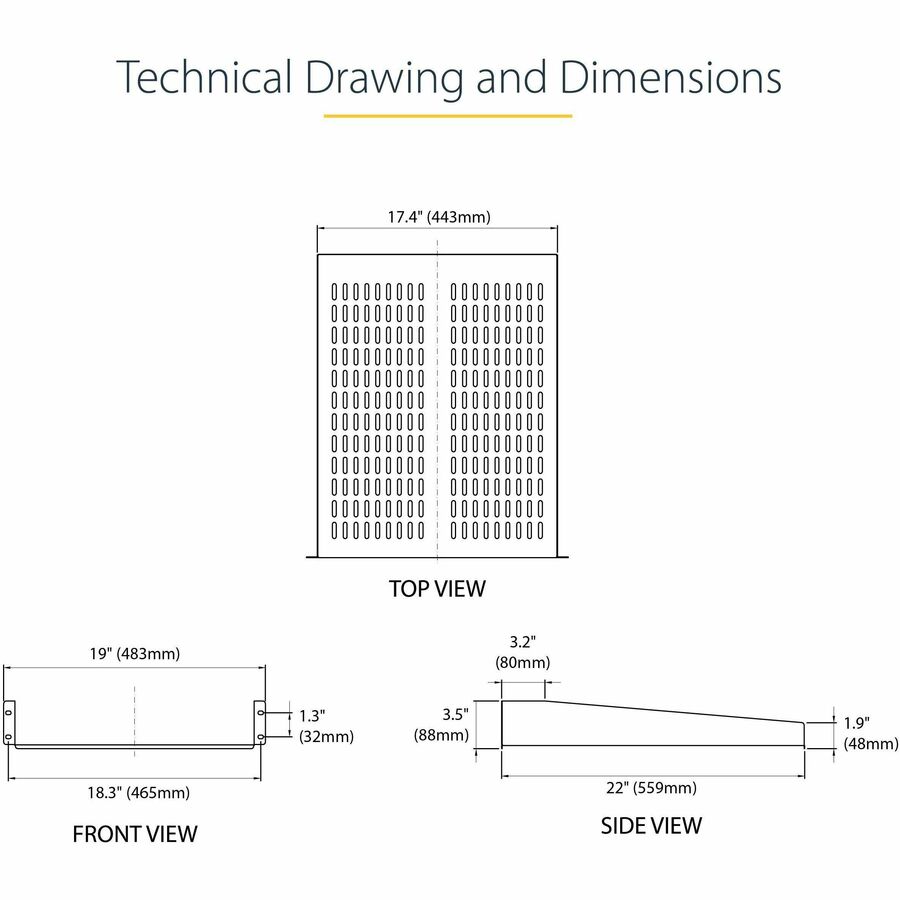 The CABSHELF22V 2U 22in Depth Vented Rack Mount Shelf lets you add a compact, 2U shelf to virtually any standard 19-inch server rack or cabinet with front mount options.