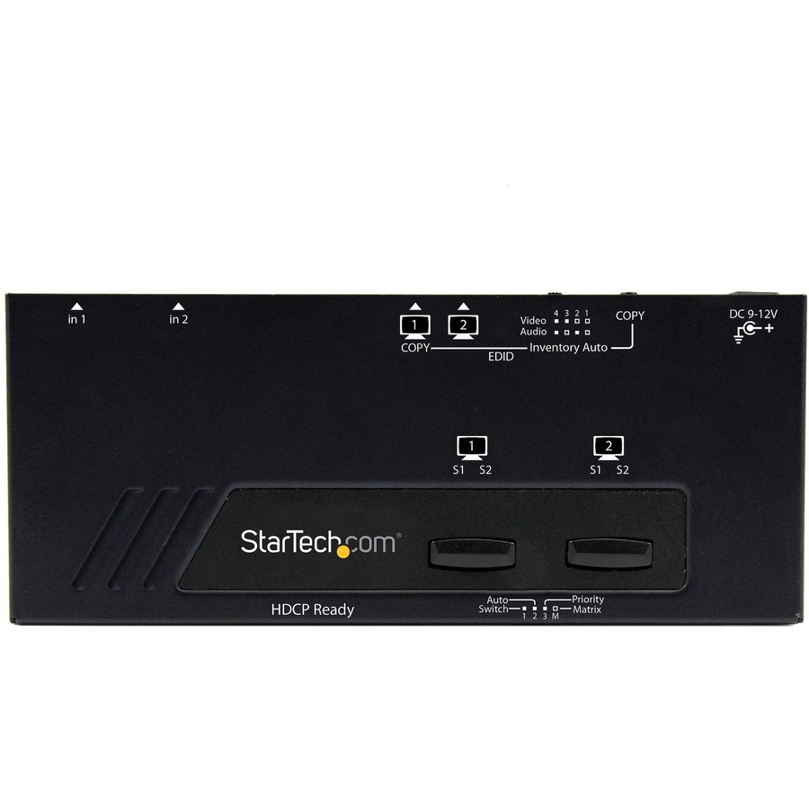 Save time and hassle by automatically switching between your HDMI audio/video sources, using the VS222HDQ 2X2 HDMI Matrix Switcher.This easy-to-use HDMI Matrix switch ensures seamless transition while switching video and display sources, with EDID copymaintaining your video resolution.